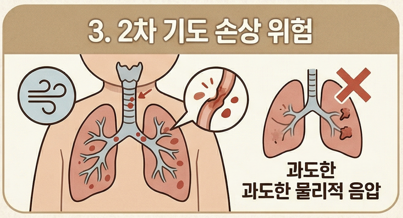 3. 과도한 압력에 의한 2차 기도 손상 위험