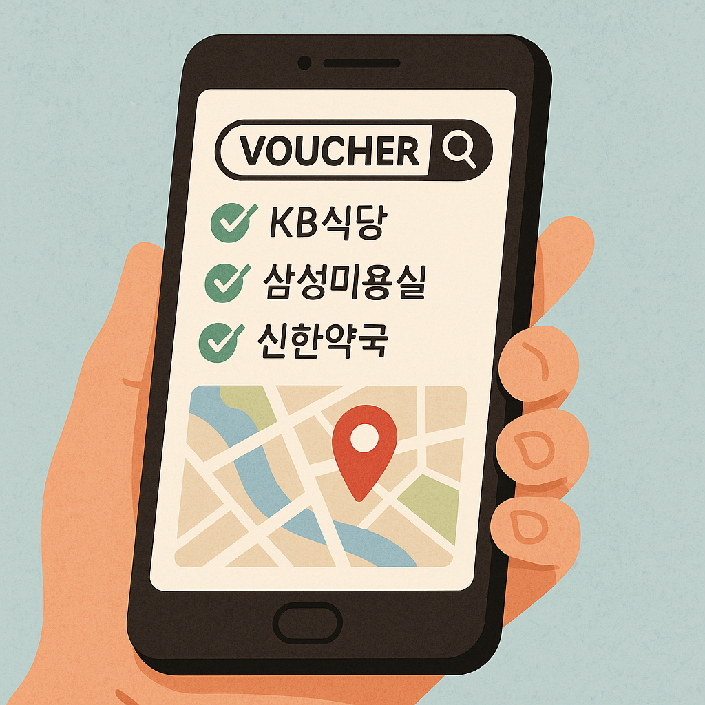 많은 카드사 앱에서는 소비 바우처 사용처 검색 기능을 제공합니다.