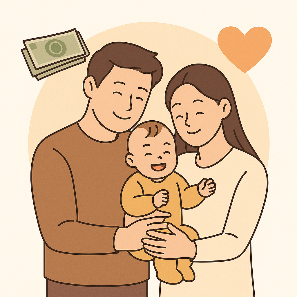 부모급여는 출산 및 양육으로 인해 발생하는 소득 손실을 보전하고, 0~1세 영아를 직접 돌보는 주 양육자에게 현금 또는 돌봄 바우처 형태로 지원되는 정부 정책입니다.