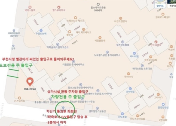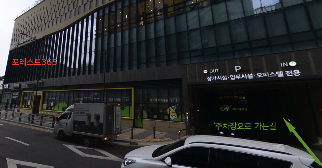 포레스트365는 힐스테이트 중동 상가 내 위치하고 있어서 지하 주차장 이용이 가능해요.