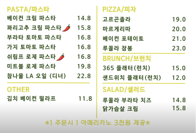 파스타, 샐러드 등 식사도 가능하니
