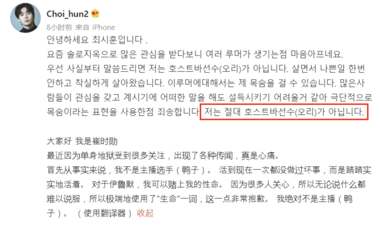 최시훈은 한때 온라인상에서