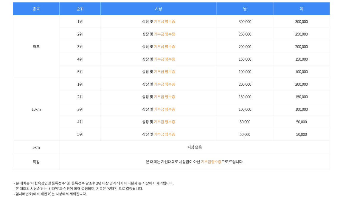 하프, 10km: 50,000원