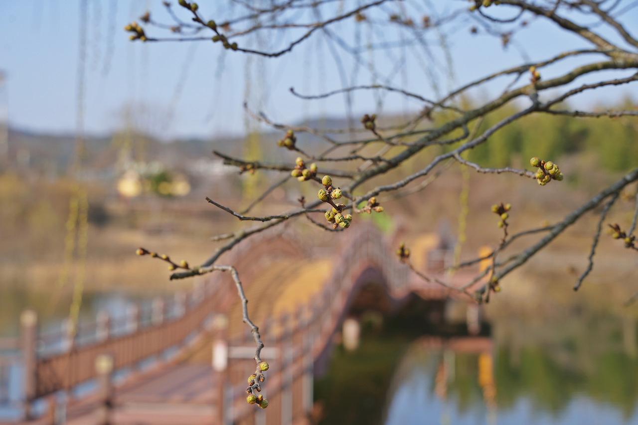 흥무로 벚꽃길, 김유신 장군묘, 대릉원 돌담길, 황룡사 마루길 등 시내권 벚꽃 명소는 아직 봉오리 상태입니다. 하지만 19일과 비교해 나무 전체에 붉은빛이 돌기 직전일 만큼 봉오리가 한창 영글었습니다. 이르면 이번 주 3월 26일(목)에서 27일(금) 사이 첫 꽃망울을 터뜨리며 슬슬 개화를 시작할 것으로 보입니다.