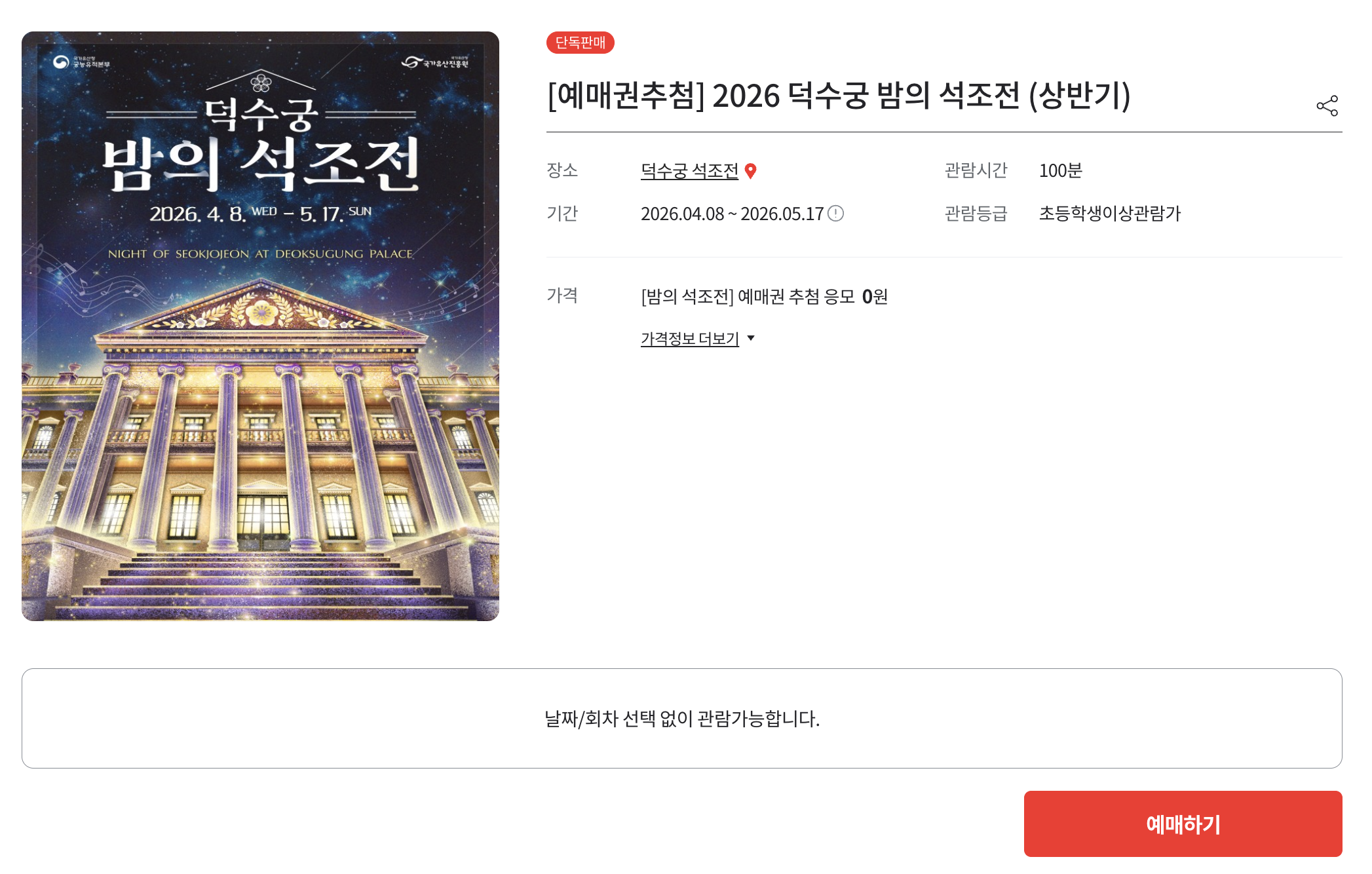 2026년 덕수궁 밤의 석조전 행사 개요 및 예매 일정