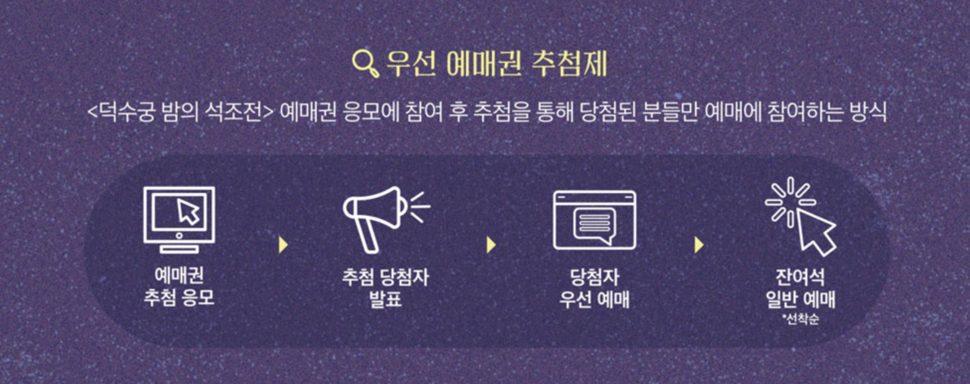 | 1. 예매권 추첨 응모 | ⭐️ 3. 18.(수) 14:00 ~ 3. 24.(화) 23:59 ⭐️ | 1개 ID당 1회, 1인 최대 1매 응모 가능 |